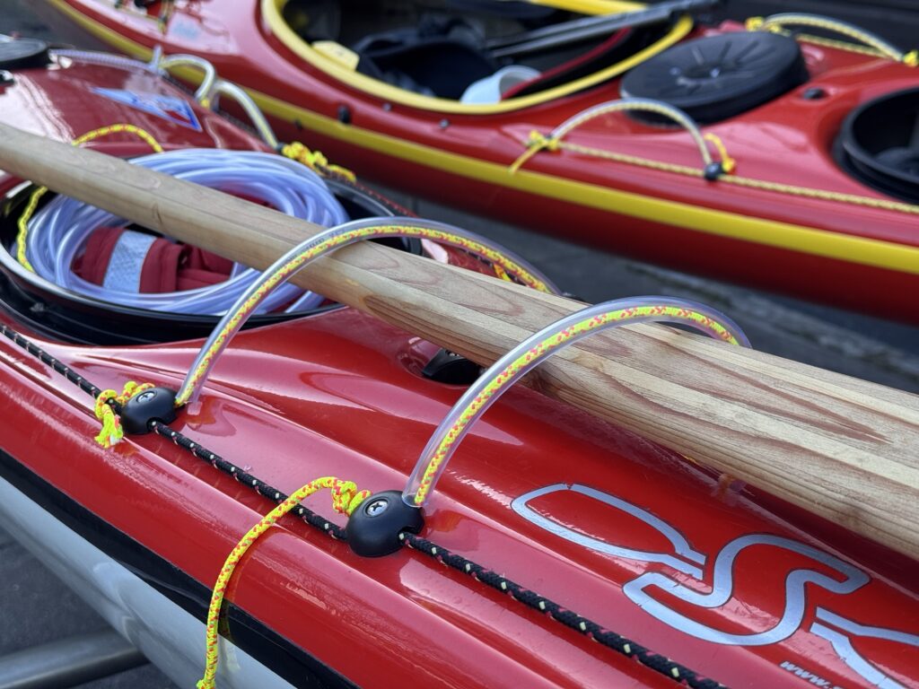 Wir haben begonnen, die Rettungsleinen heute mit Schläuchen zu überziehen.