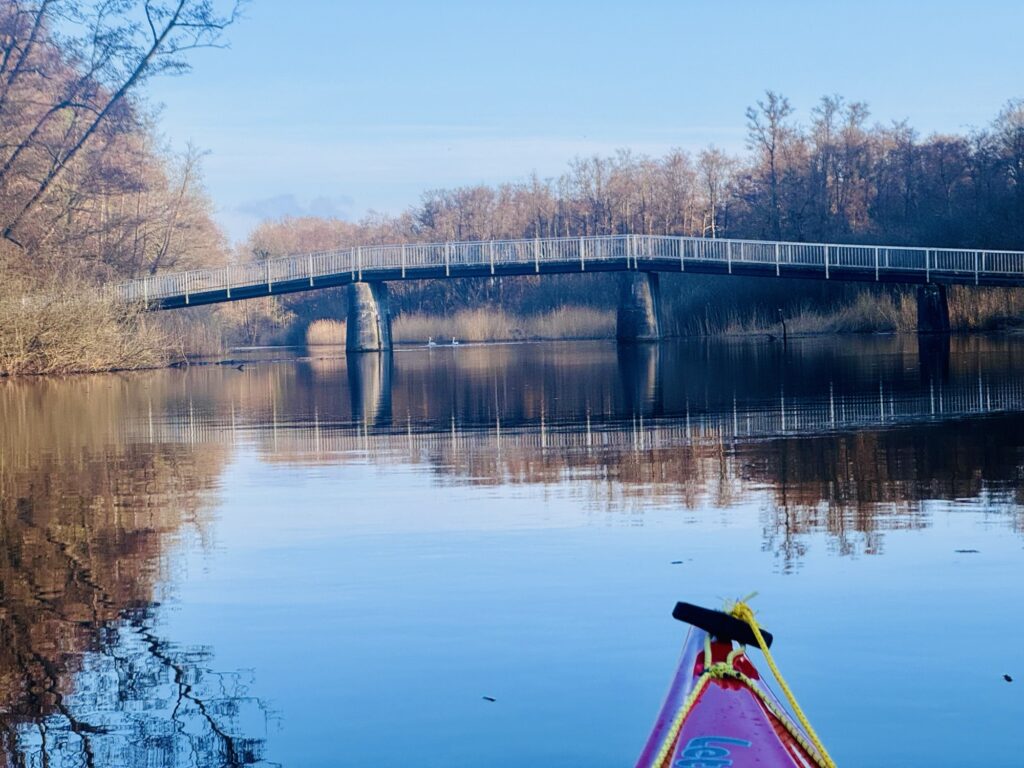Mehrere Schwanenpaare kreuzten unseren Kurs. Sie blieben zum Glück friedlich. hoffentlich bleibt das auch so, wenn die Jungen geschlüpft sind. Ansonsten sahen wir zwei Nutrias, die Schildkröten lagen heute nicht auf dem gewohnten Baumstamm. Vielleicht ist es noch zu kalt.
