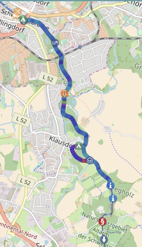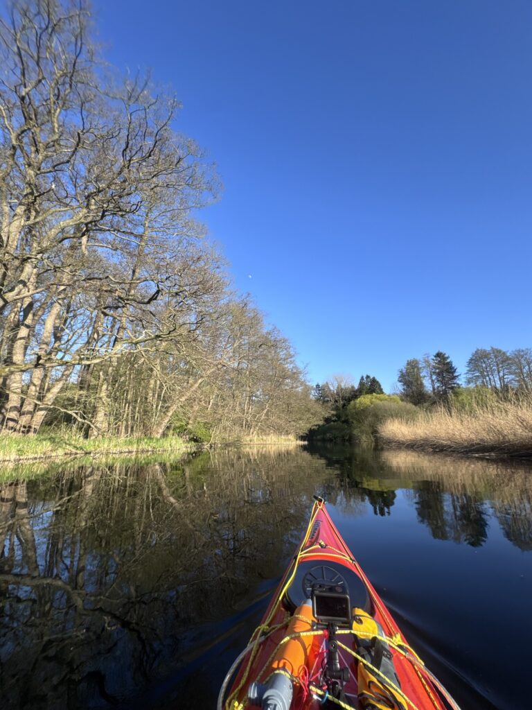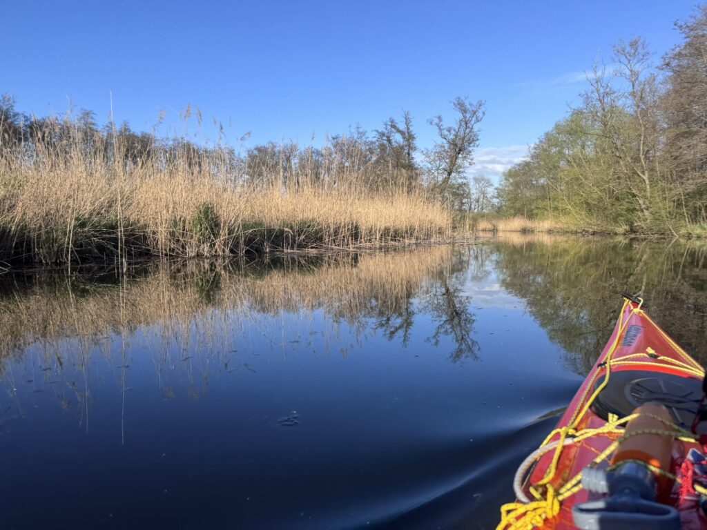 Die Schwentine hat ca 14 Grad – gemessen mit unserem neuen Poolthermometer. Sie ist also schon etwas wärmer als die Förde, bei deutlich geringerer Wassertiefe.